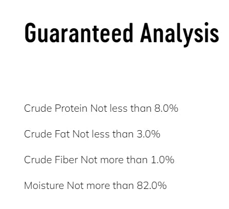 Chicken, Chicken Broth, Water Sufficient for Processing, Potato Starch, Chicken Liver, Egg, Tapioca Starch, Natural Flavor, Salt, Tricalcium Phosphate, Sunflower Oil, Guar Gum, Magnesium Sulfate, Vitamins [Vitamin E Supplement, Thiamine Hydrochloride, Niacin, Vitamin A Supplement, Pyridoxine Hydrochloride, d-Calcium Pantothenate, Riboflavin Supplement, Folic Acid, Vitamin D3 Supplement, Biotin, Vitamin B12 Supplement], Potassium Chloride, Choline Chloride, Zinc Amino Acid Chelate, Iron Amino Acid Chelate, Manganese Amino Acid Chelate, Copper Amino Acid Chelate, Sodium Selenite, Potassium Iodide.